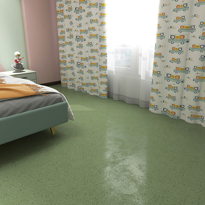 Cuộn sàn vinyl đồng chất RUF được sử dụng chủ yếu trong các bệnh viện và nhà trẻ.Mặt